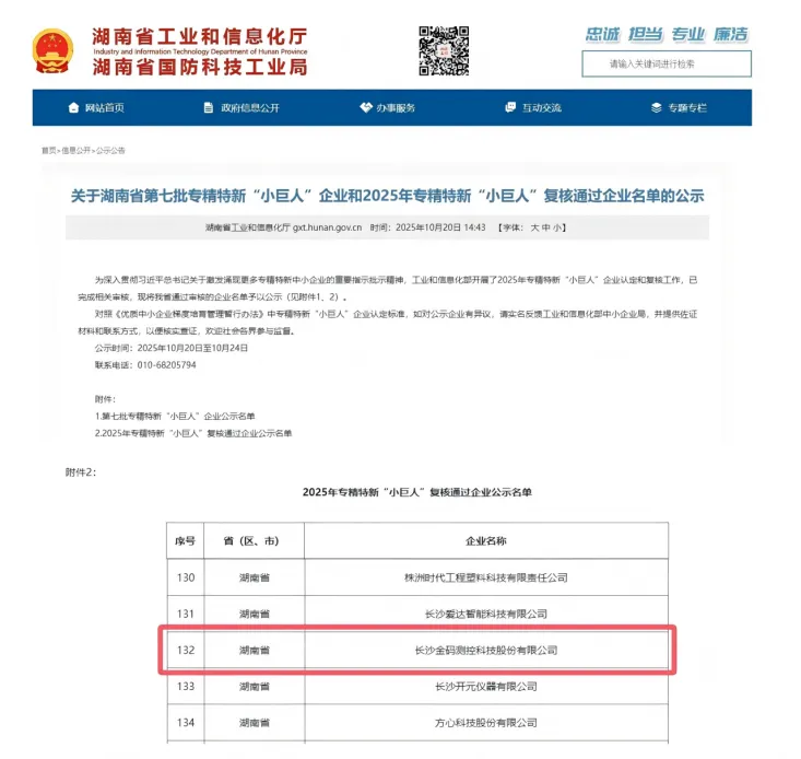 Pada Oktober 2025, Kementerian Perindustrian dan Teknologi Maklumat telah menyelesaikan proses semakan untuk perusahaan "Little Giant" 2025 di bawah klasifikasi "Specialized, Refined, Differential and Innovative" dan menerbitkan senarai tersebut secara rasmi. Kingmach Measurement & Monitoring Technology Co., Ltd telah berjaya melepasi semakan ketat dan memperoleh semula penghormatan peringkat kebangsaan ini, berkat keupayaan inovasi yang berterusan, kekuatan teknikal profesional dan prestasi pasaran yang stabil.