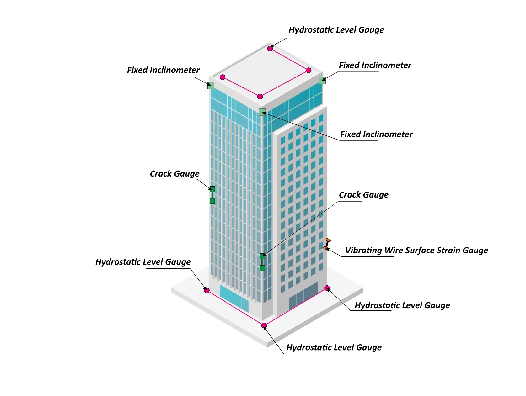 Menggunakan teknologi seperti Internet Perkara, komunikasi mudah alih dan pengkomputeran awan, ia menjalankan pemantauan keselamatan automatik terhadap ubah bentuk luaran dan perubahan kedudukan spatial tiga dimensi struktur seperti bangunan tinggi, bangunan rentang panjang, bangunan berisiko tinggi dan bangunan purba. Ia merekodkan status kesihatan bangunan sepanjang keseluruhan kitaran hayatnya, mengawal risiko dan memastikan perkhidmatan bangunan yang sihat.